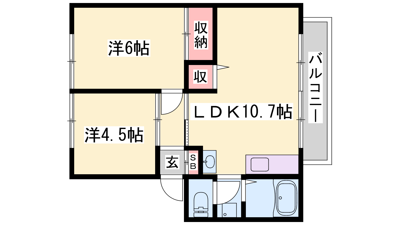 - LDK10.7帖、洋室4.5帖、洋室6帖