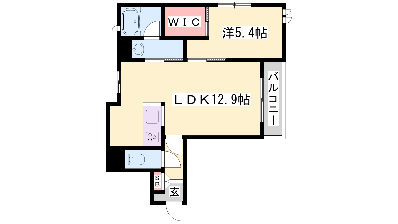 - LDK12.9帖、洋室5.4帖
