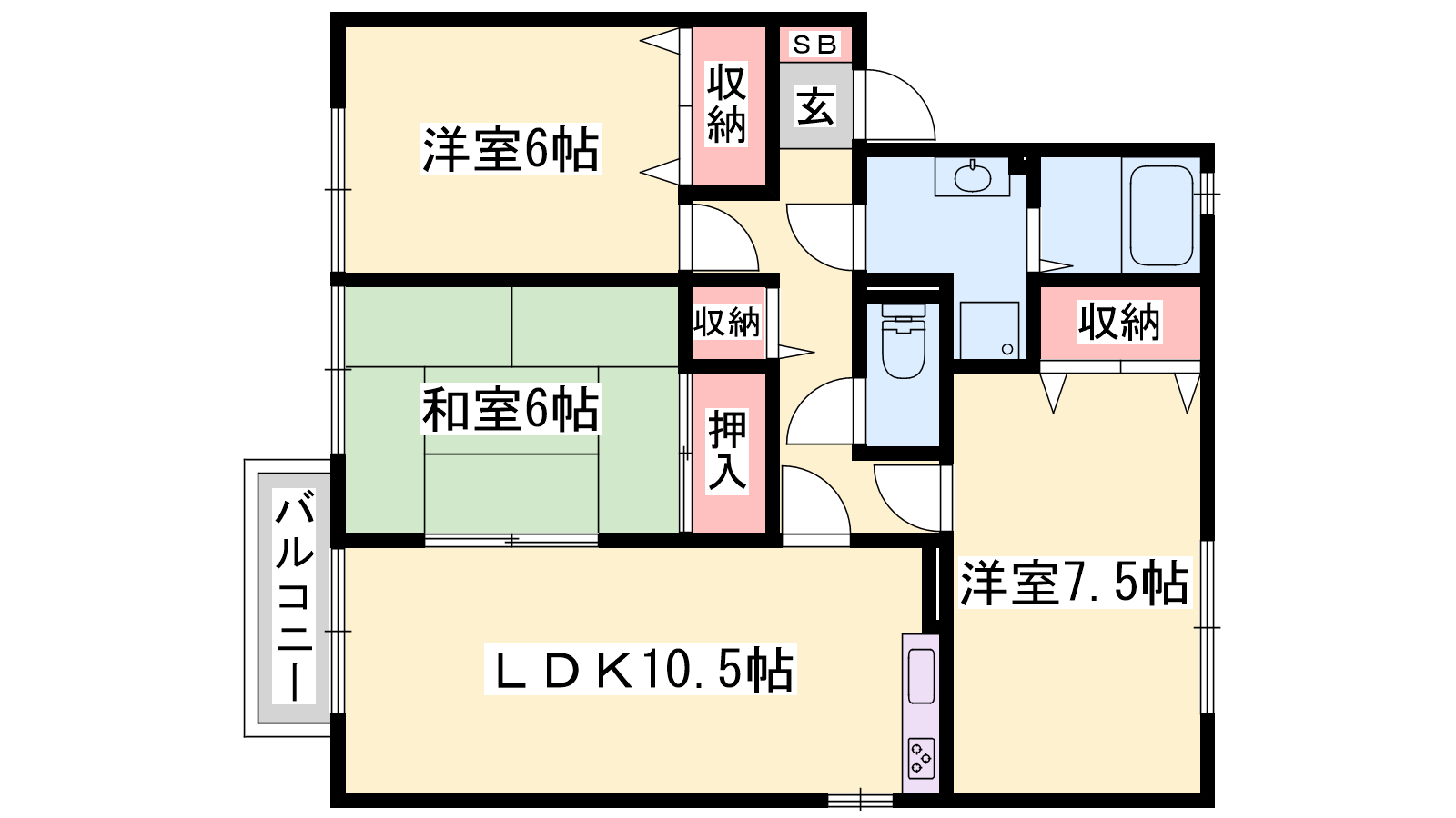 - LDK10.5帖、洋室7.5帖、洋室6帖、和室6帖