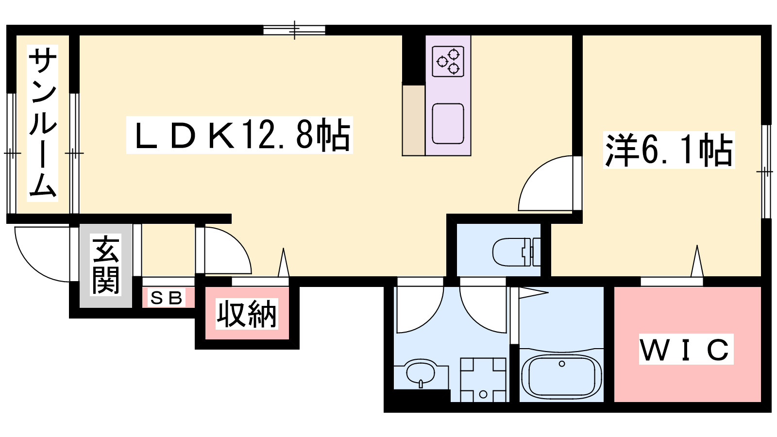- LDK12.8帖、洋室6.1帖