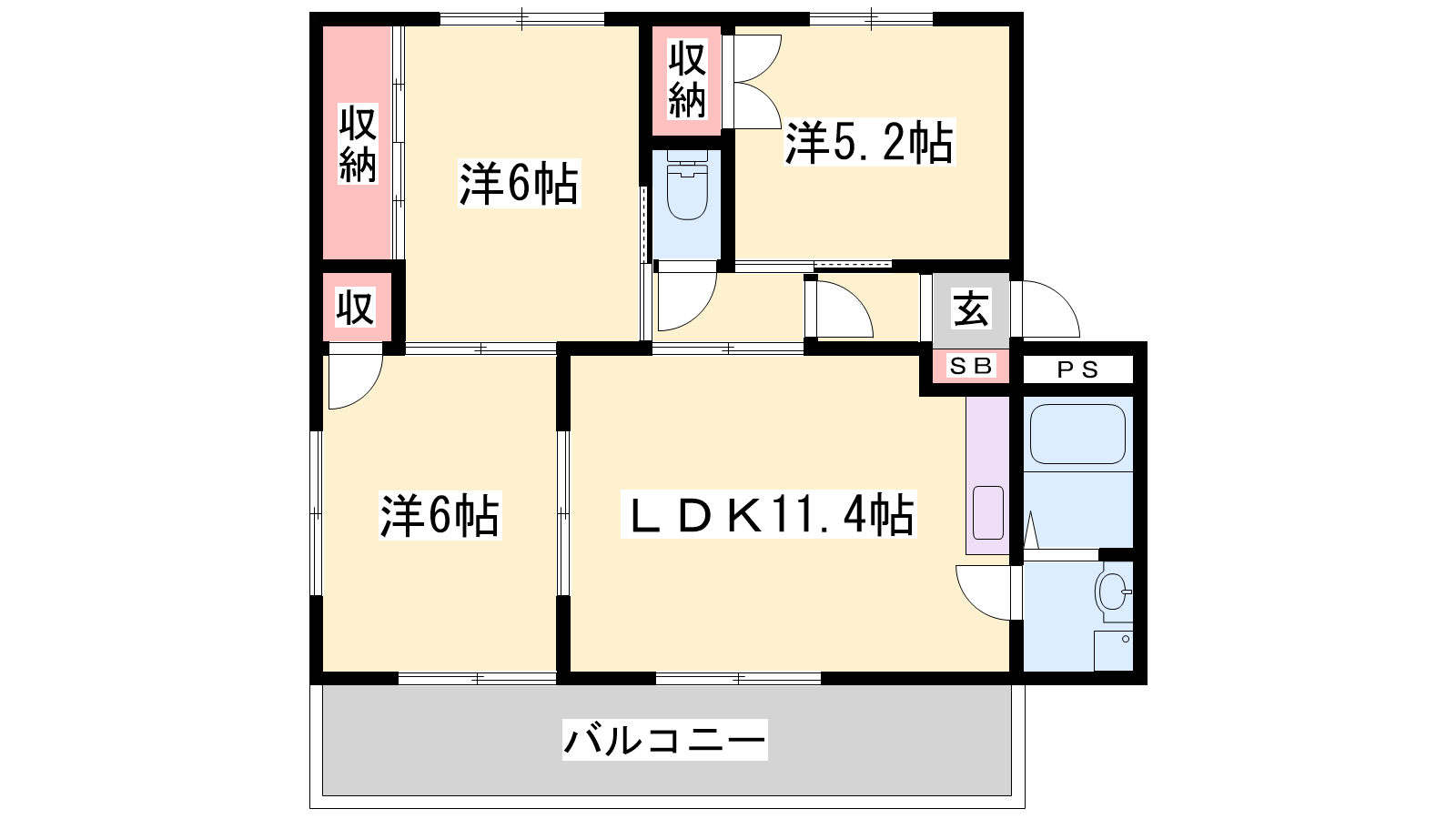 - DK11.4帖、洋室6帖、洋室5.2帖、洋室6帖