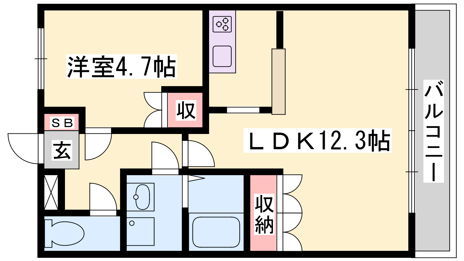 - LDK12.3帖、洋室4.7帖