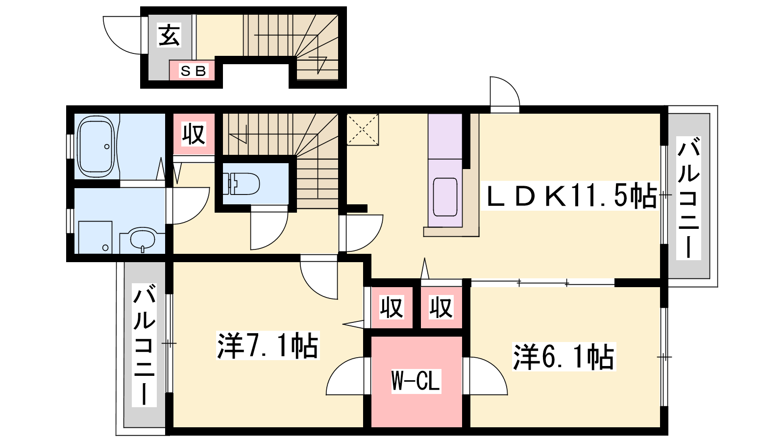 - LDK11.5帖、洋室7.1帖、洋室6.1帖