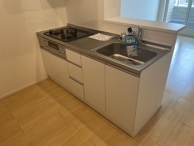 人気のカウンターキッチン。エアコン付き。システムキッチン。