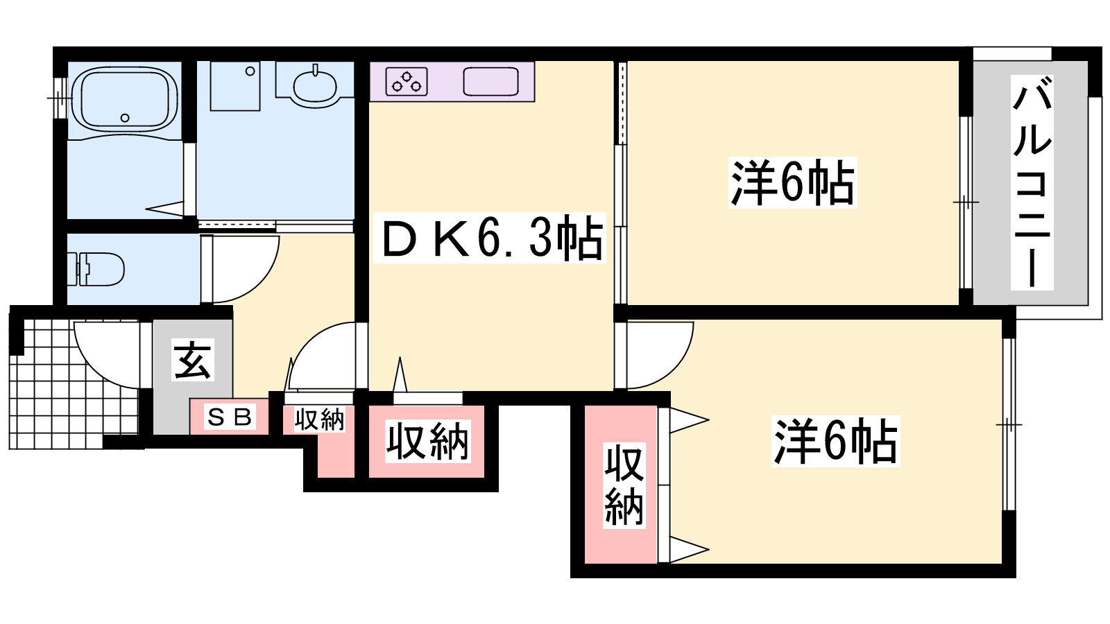 - DK6.3帖、洋室6帖、洋室6帖