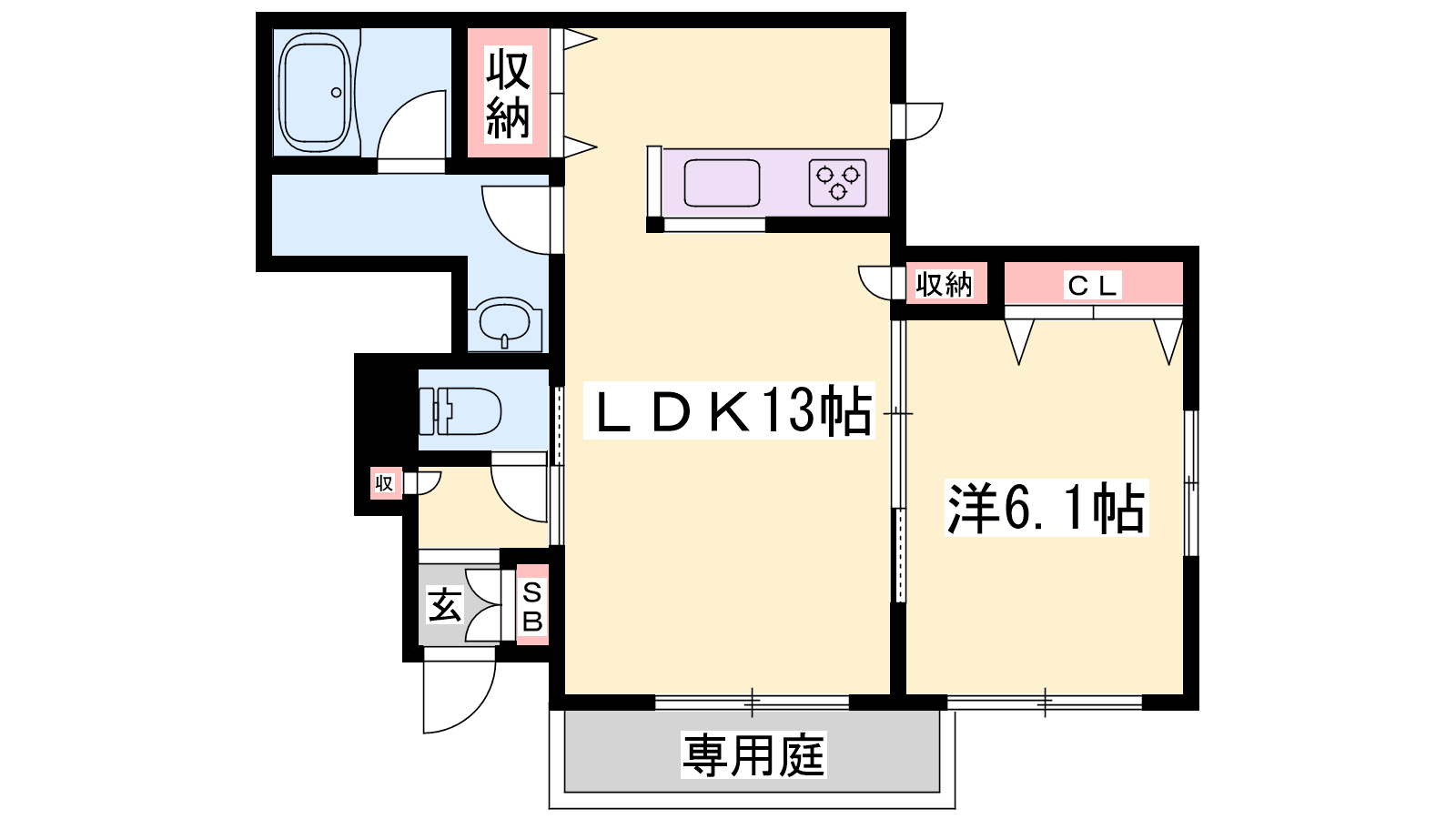 - LDK13帖、洋室6.1帖