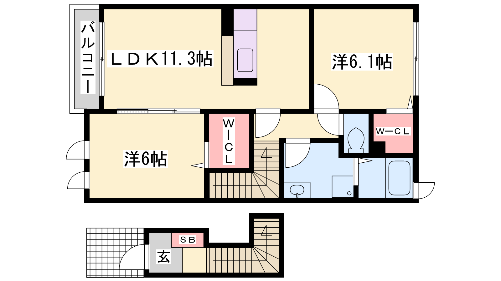 - LDK11.3帖、洋室6.1帖、洋室6帖