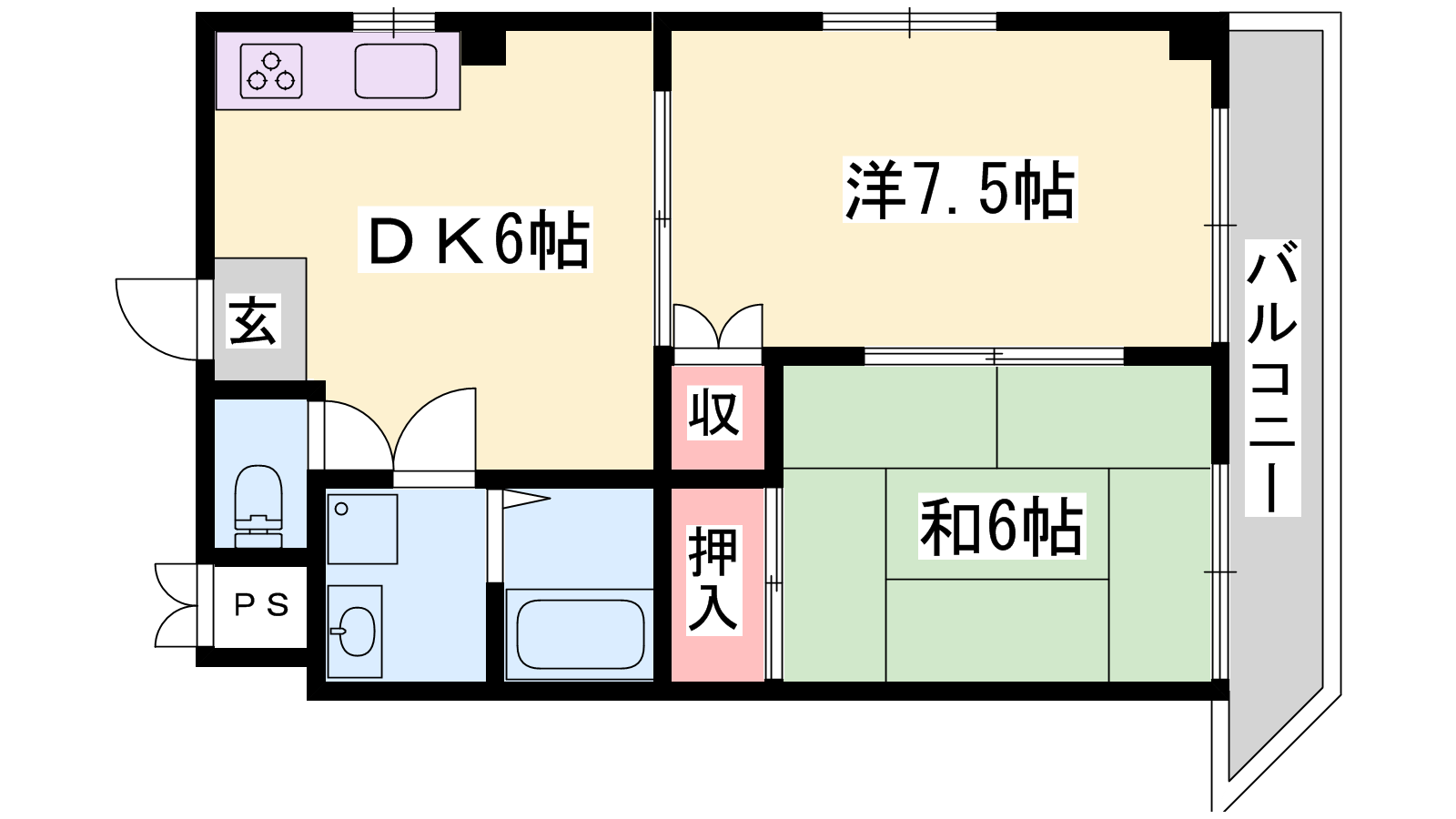 - DK7帖、洋室7.5帖、和室6帖