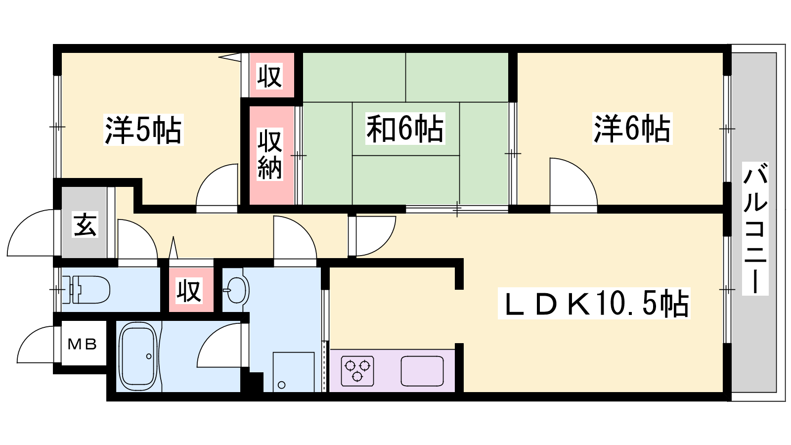 - LDK10.5帖、洋室6帖、洋室5帖、和室6帖