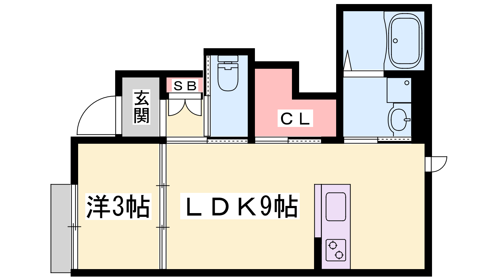 - LDK9帖、洋室3帖