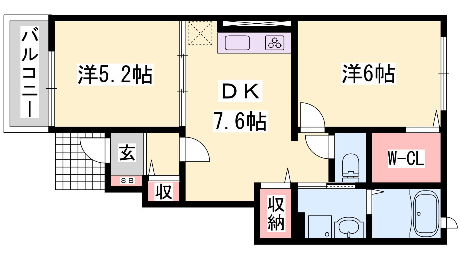 - DK7.6帖、洋室6帖、洋室6帖