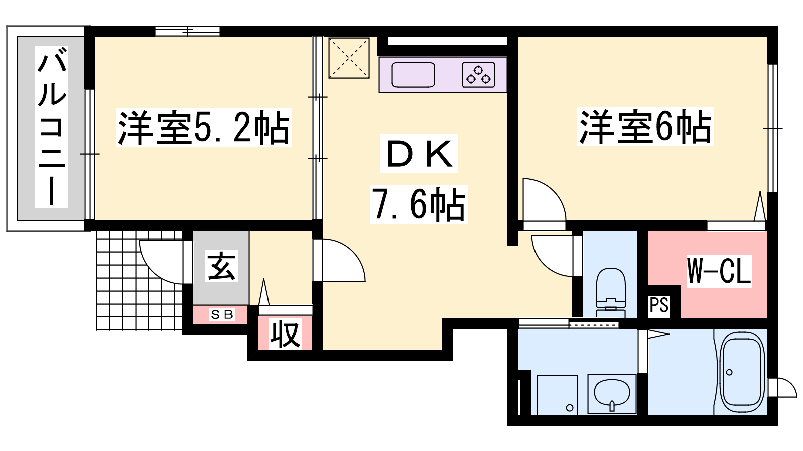 - DK7.6帖、洋室6帖、洋室5.2帖