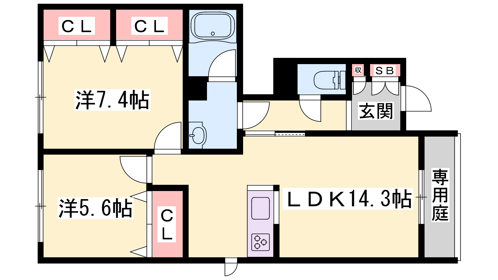 - LDK14.3帖、洋室7.4帖、洋室5.6帖