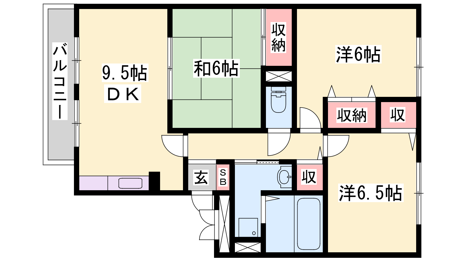 - DK9.5帖、洋室6.5帖、洋室6帖、和室6帖