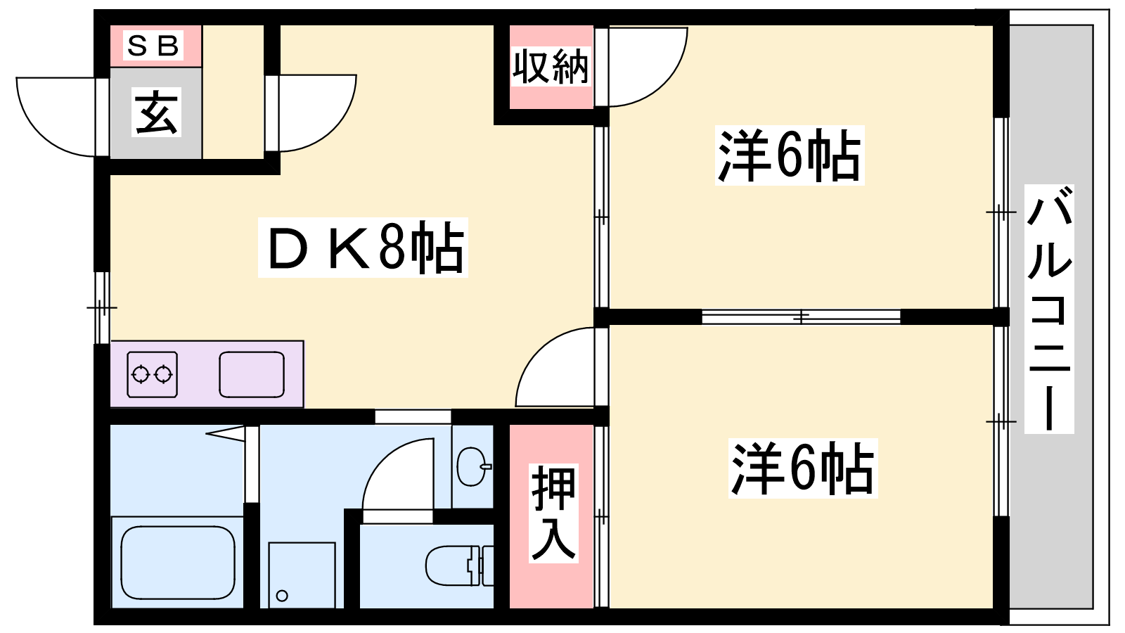 - DK8帖、洋室6帖、洋室6帖