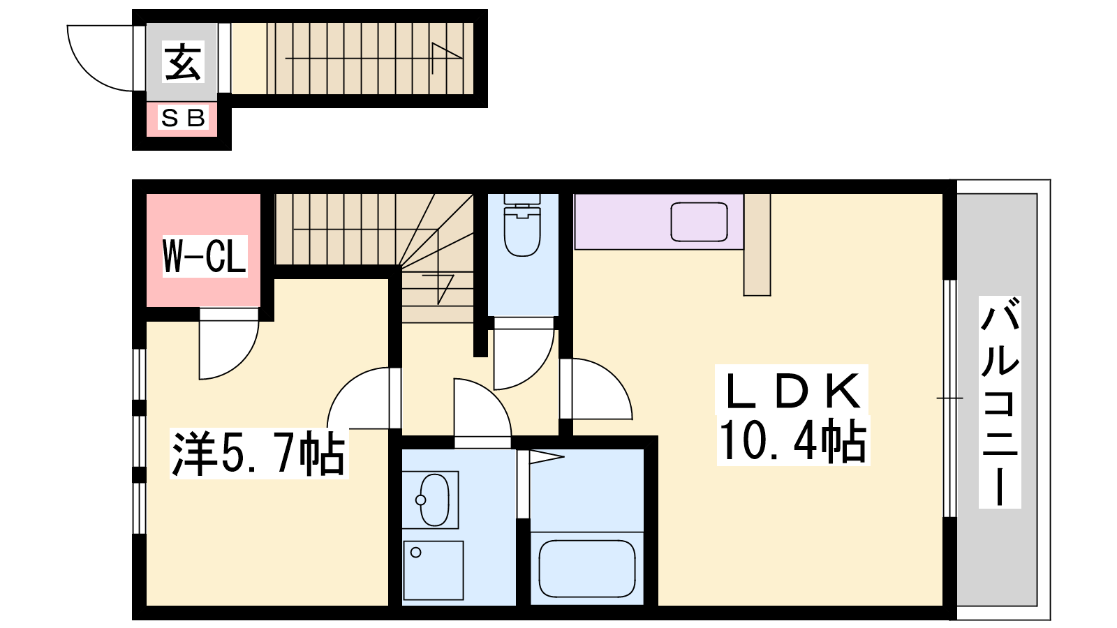 - LDK10.4帖、洋室5.7帖
