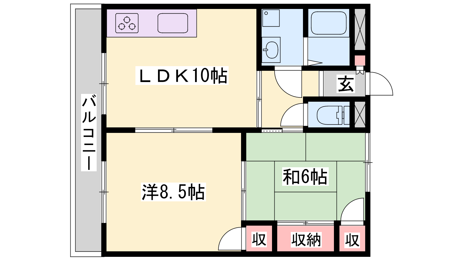 - LDK10帖、洋室8.5帖、和室6帖