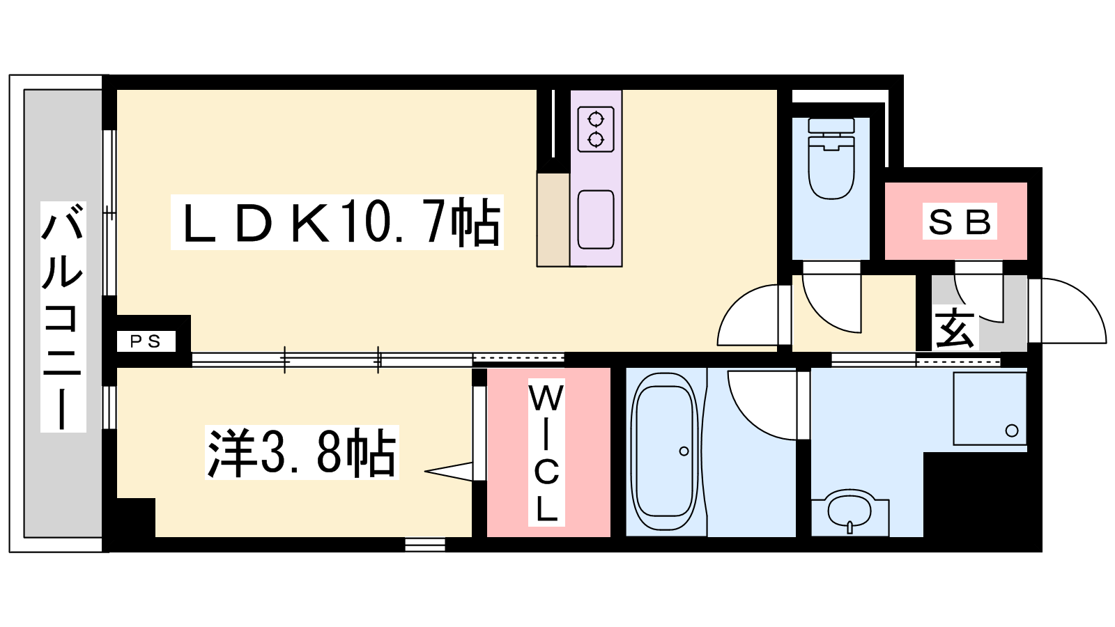 - LDK10.7帖、洋室3.8帖