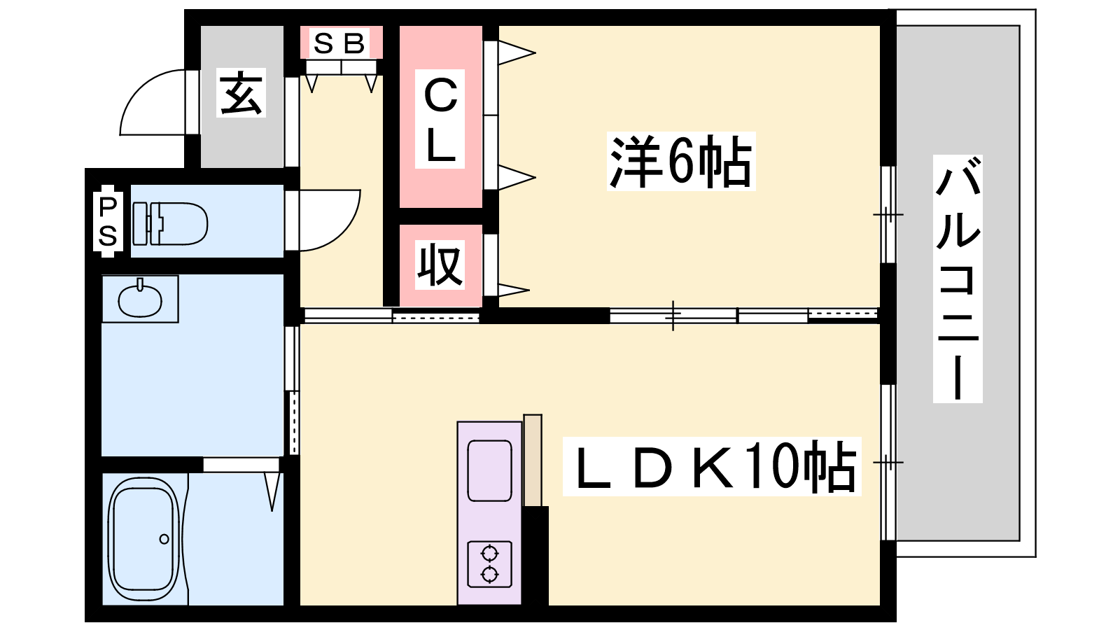 - LDK10帖、洋室6帖
