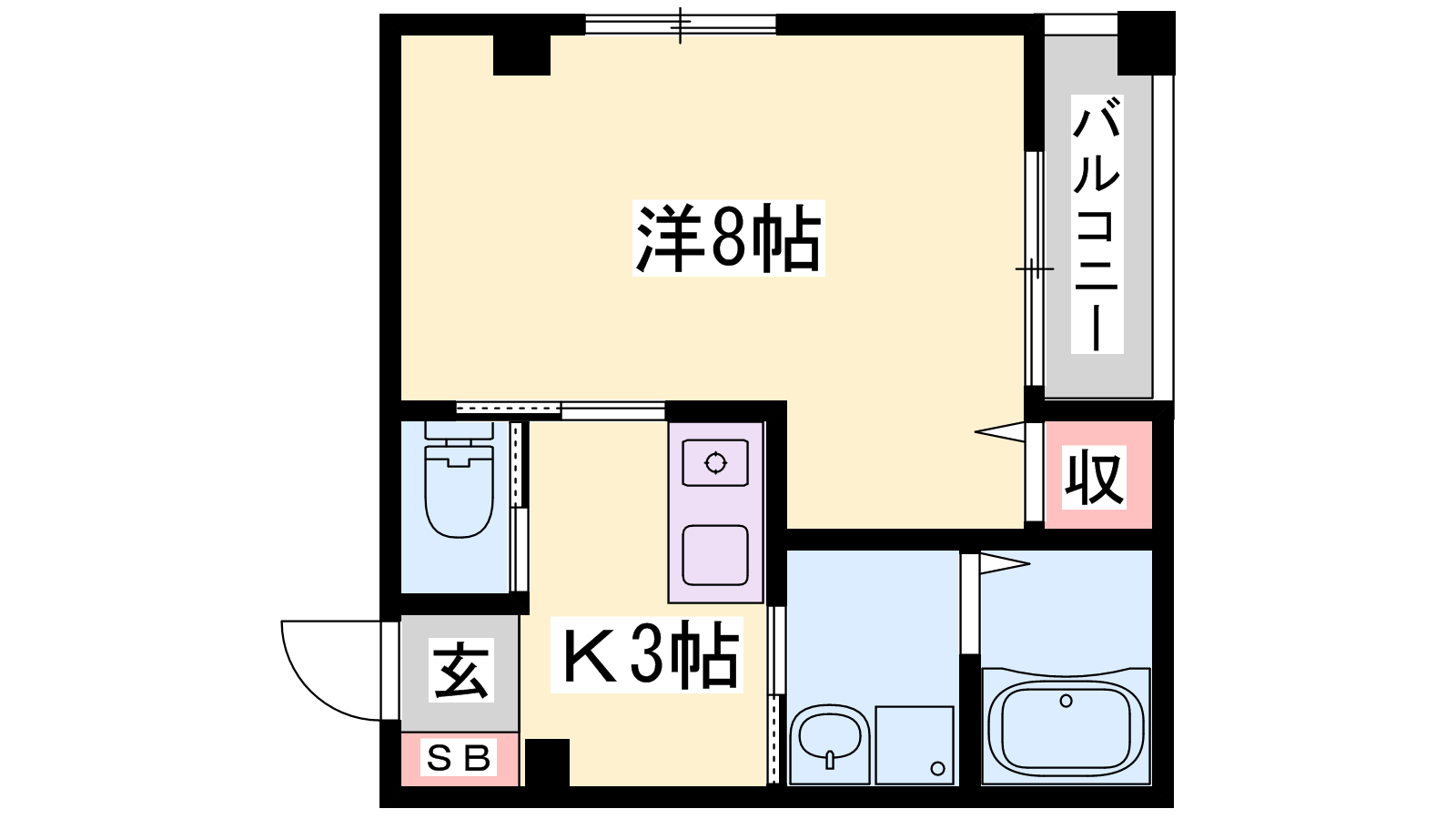 - K3帖、洋室8帖