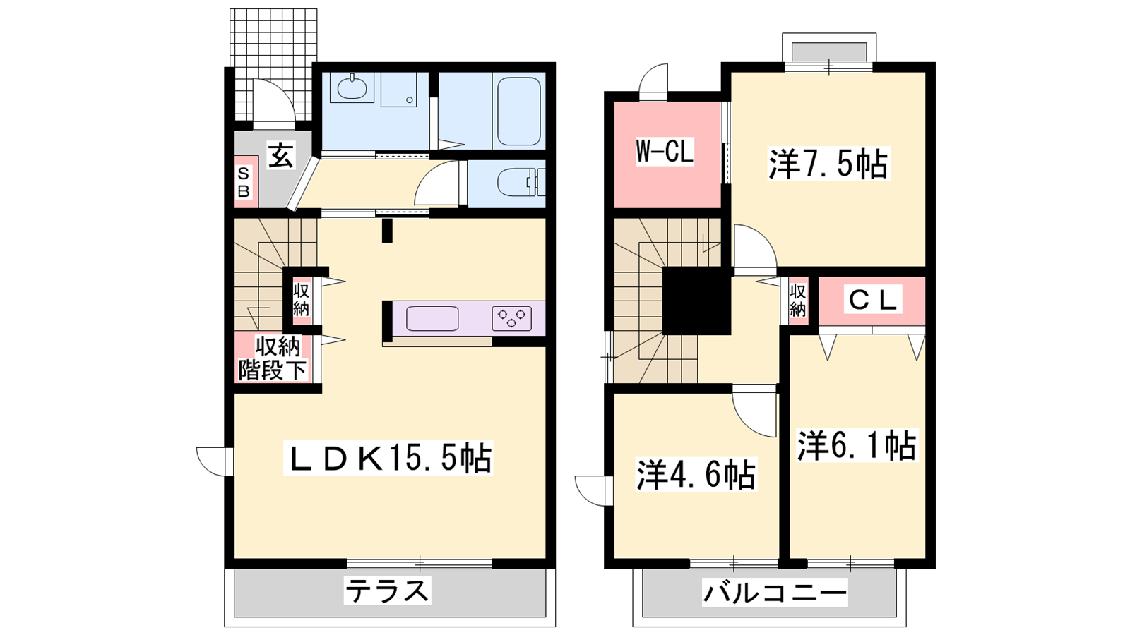 - LDK15.5帖、洋室7.5帖、洋室6.1帖、洋室4.6帖