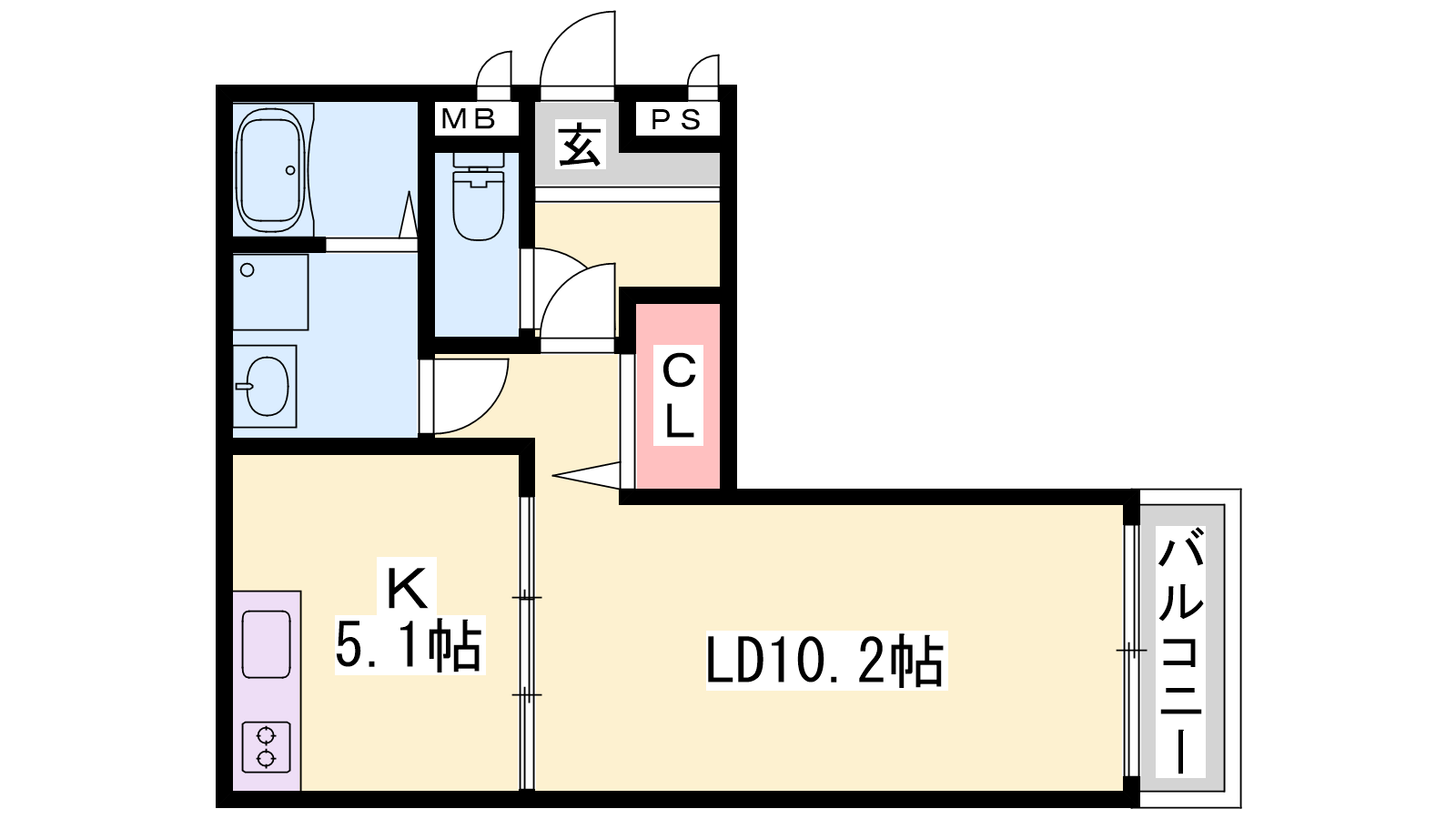 - K5.1帖、洋室10.2帖