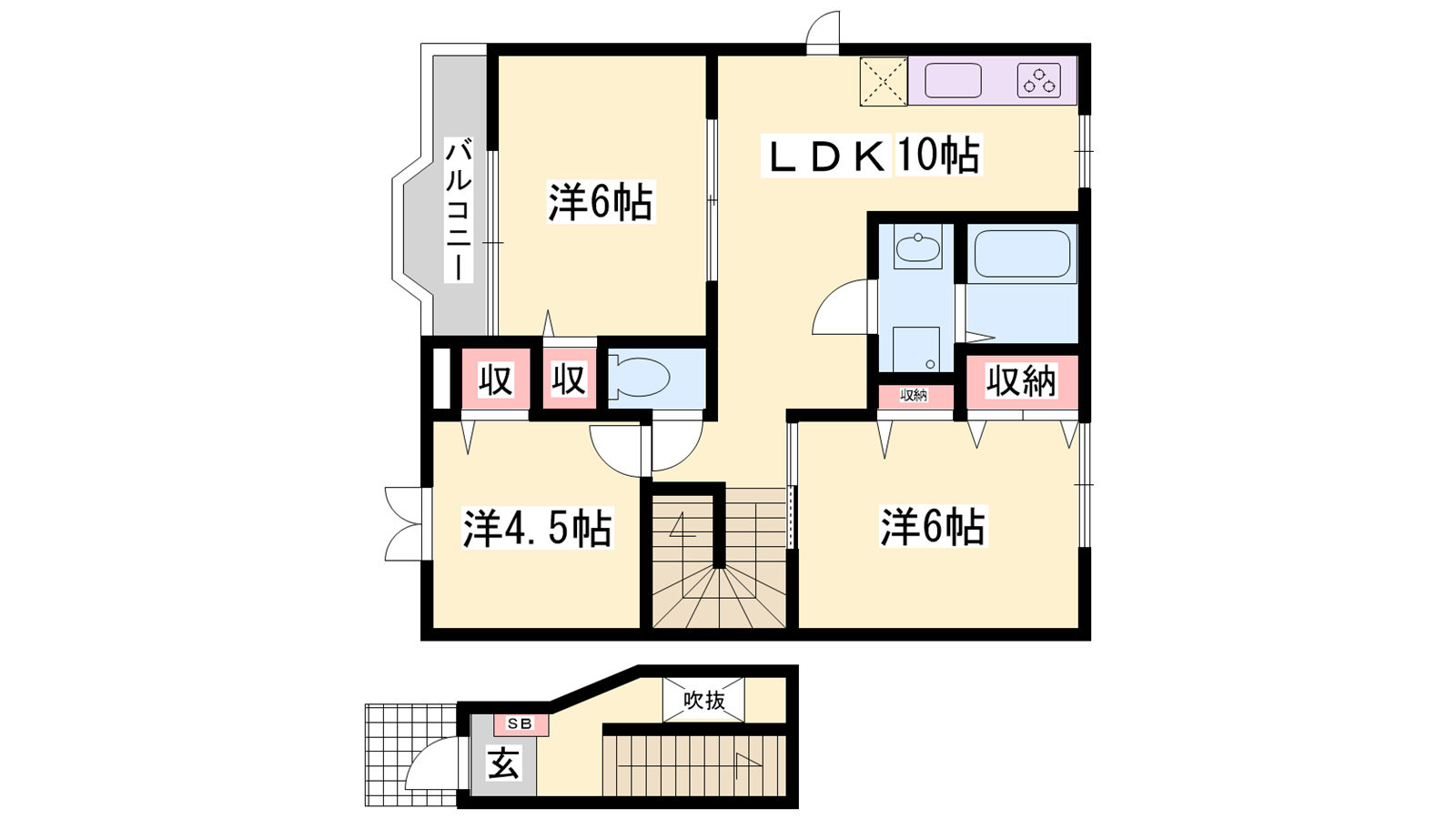 - LDK10帖、洋室6帖、洋室6帖、洋室4.5帖