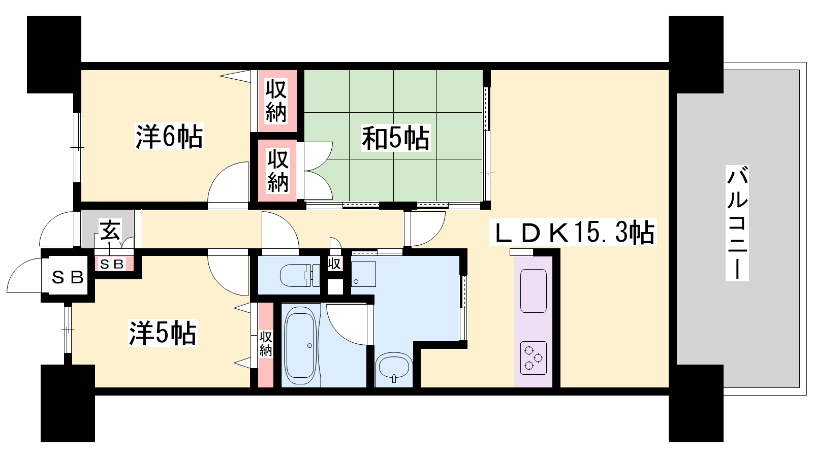 - LDK15.3帖、洋室6帖、洋室5帖、和室5帖