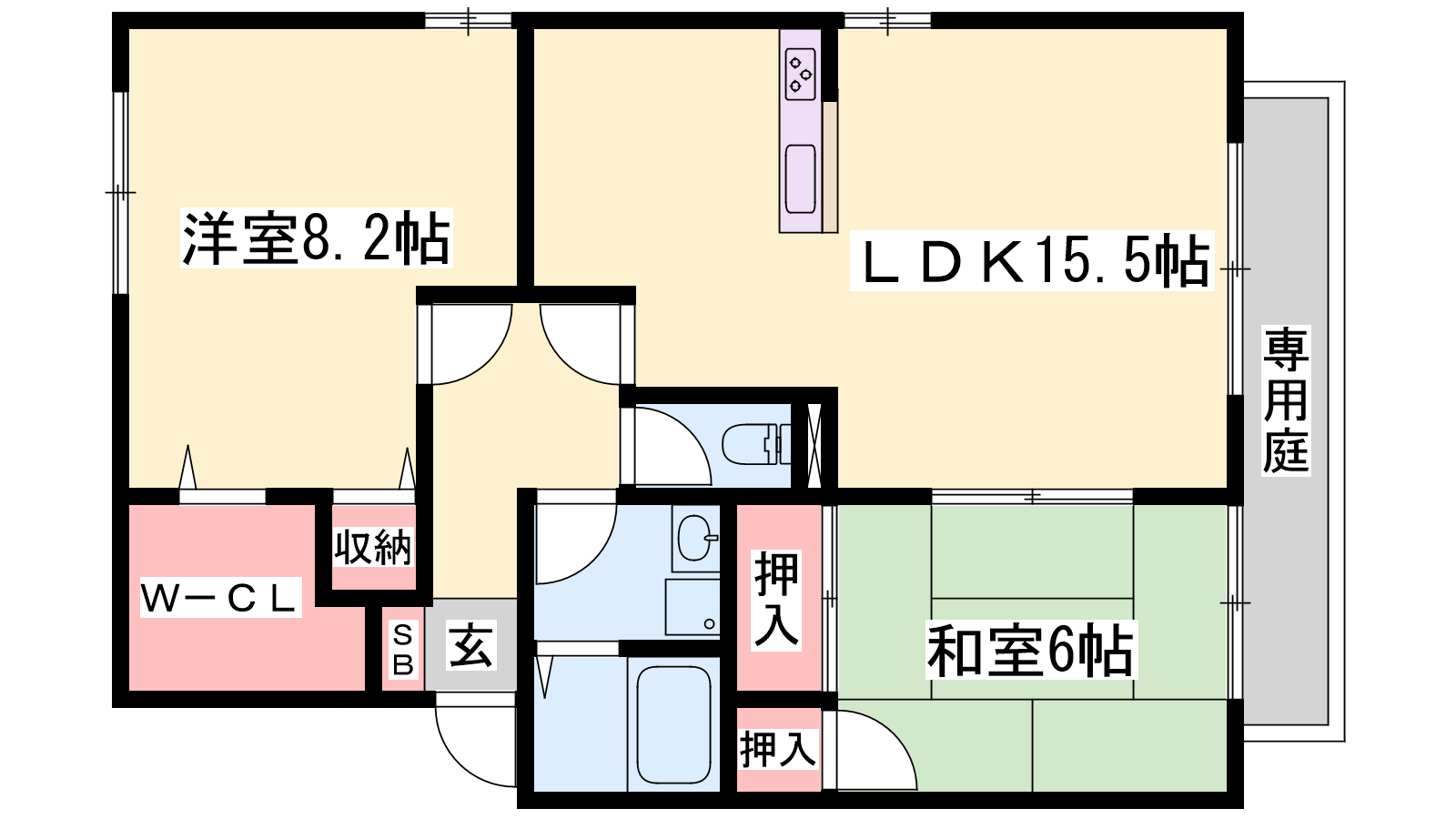- LDK15.5帖、洋室8.2帖、和室6帖