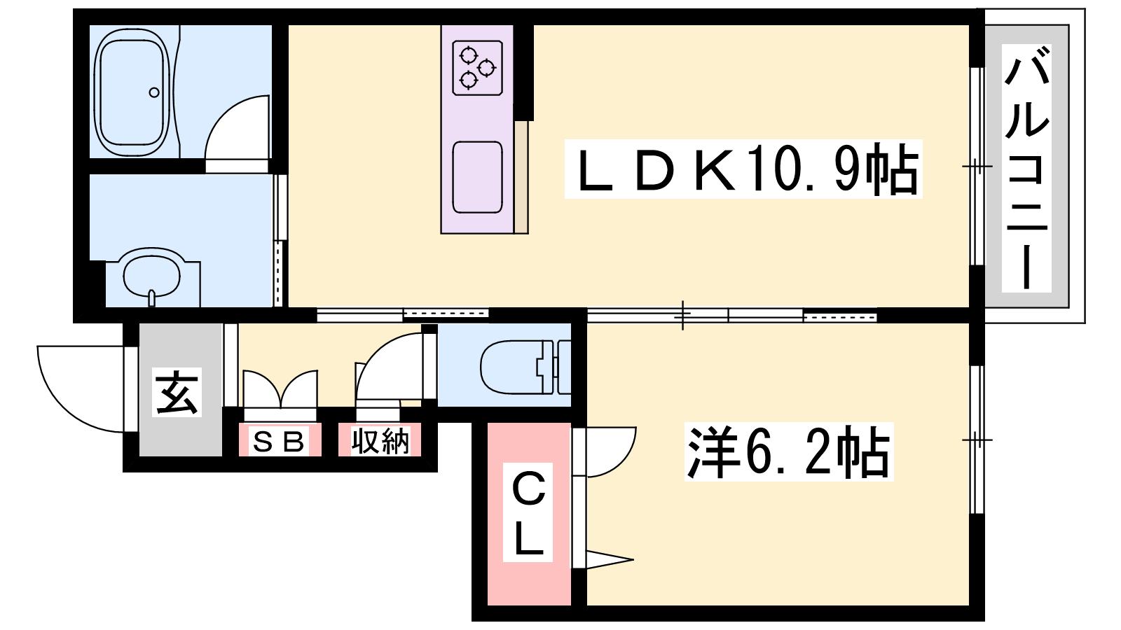 - LDK10.9帖、洋室6.2帖