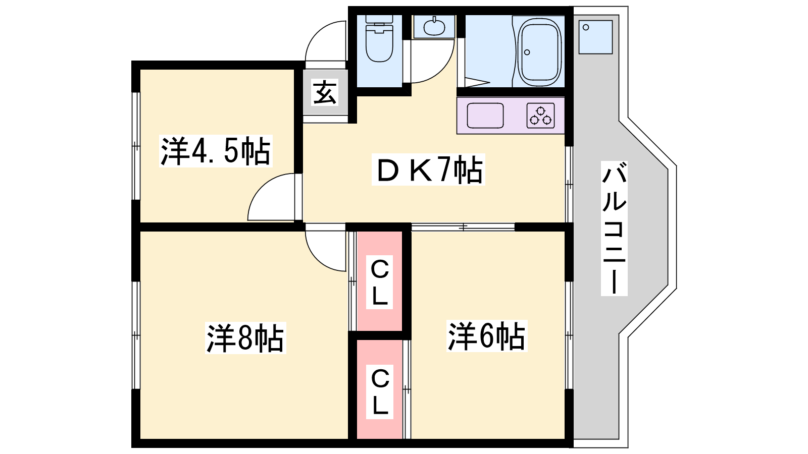 - DK7帖、洋室8帖、洋室6帖、洋室4.5帖