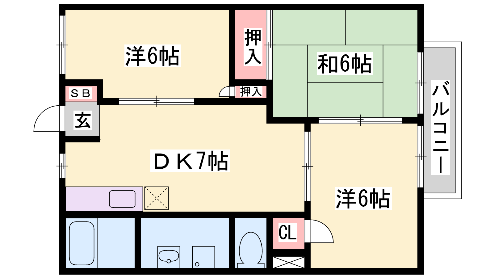 - DK7帖、洋室6帖、洋室6帖、和室6帖