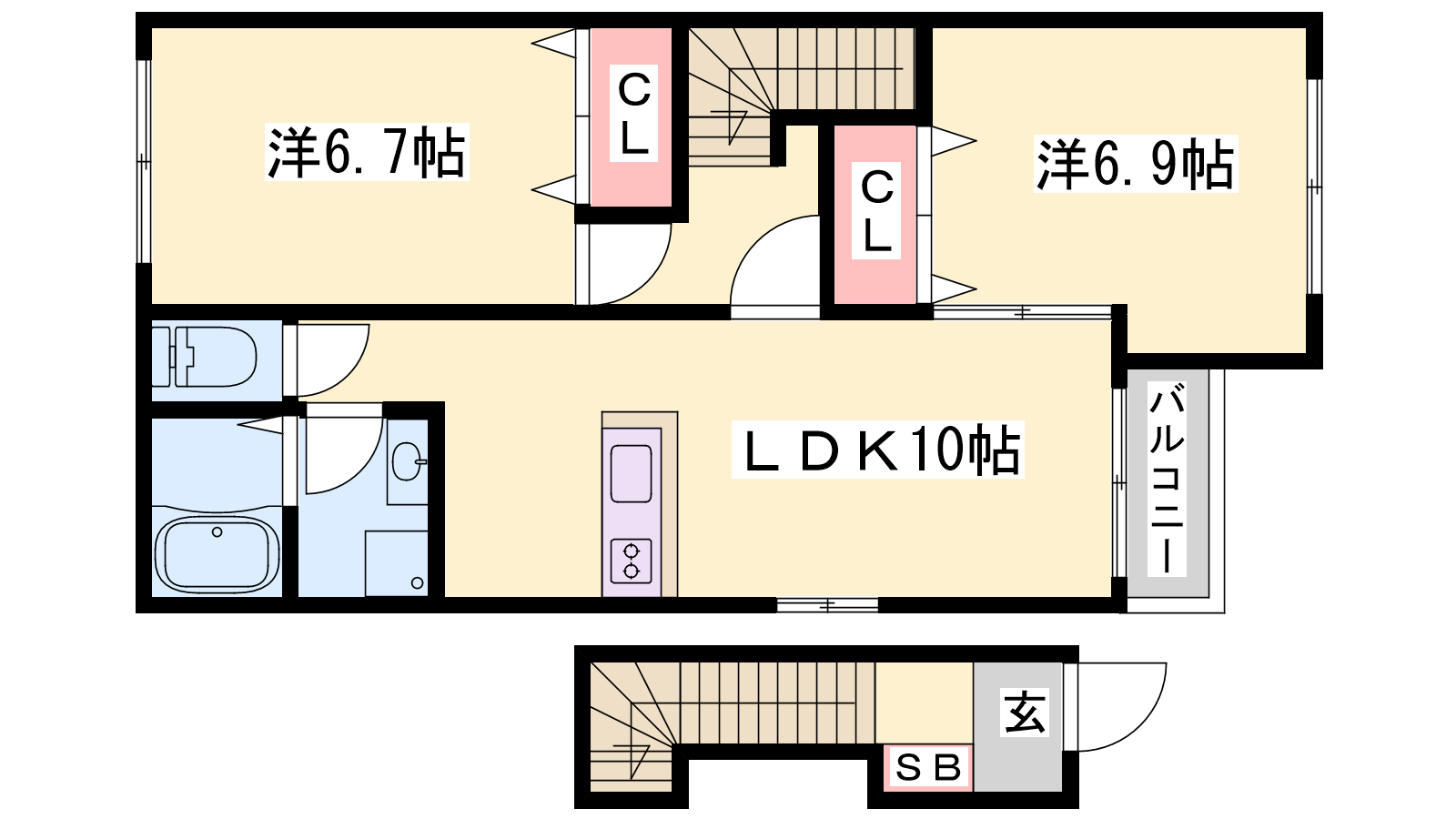 - LDK10帖、洋室6.9帖、洋室6.7帖