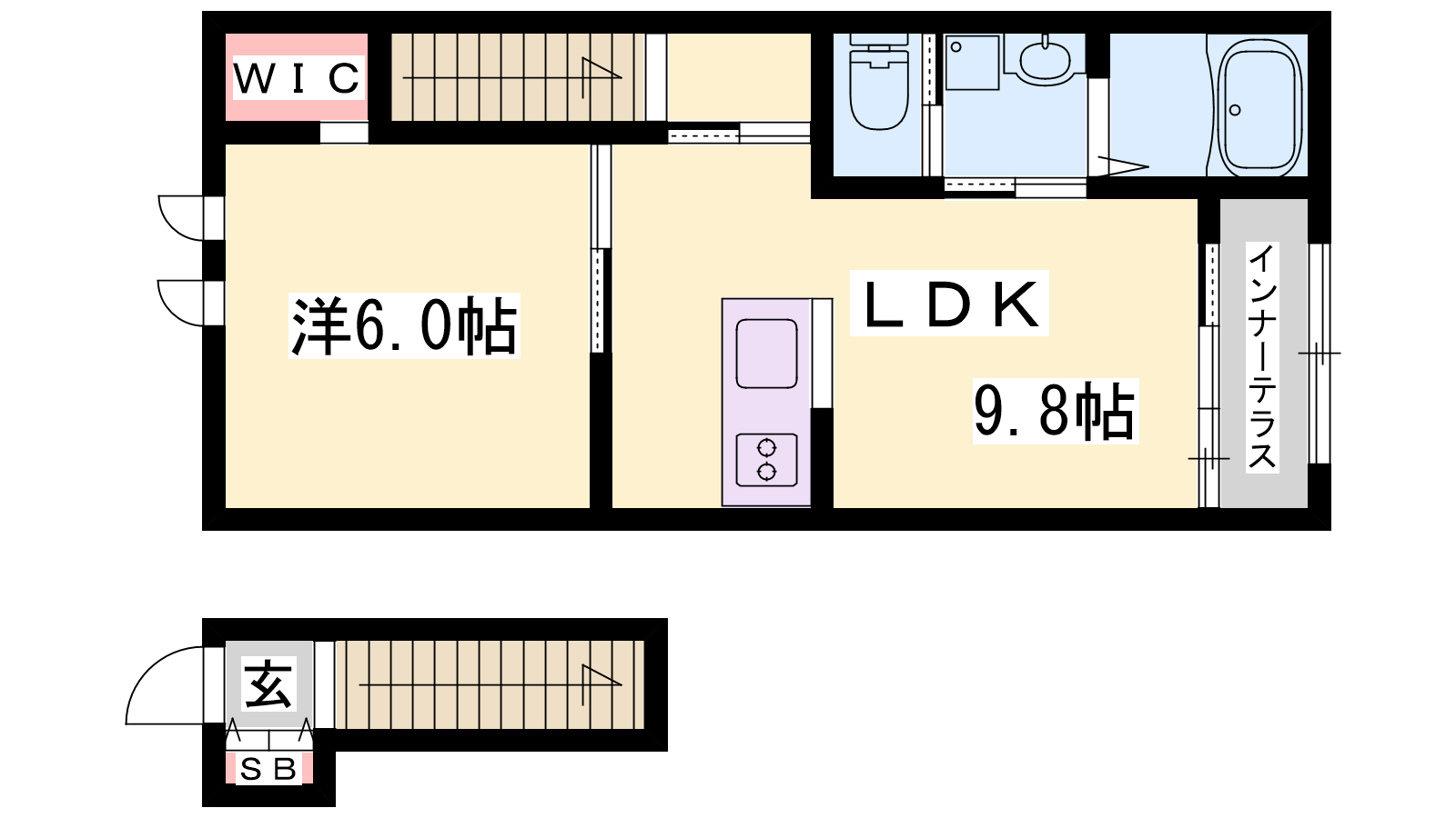 - LDK9.8帖、洋室6帖