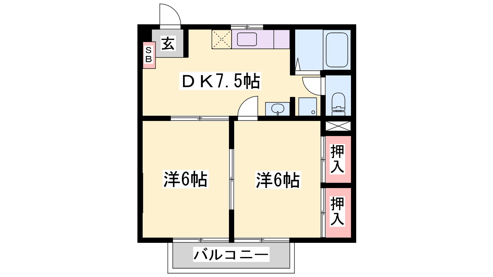 - DK7帖、洋室6帖、和室6帖