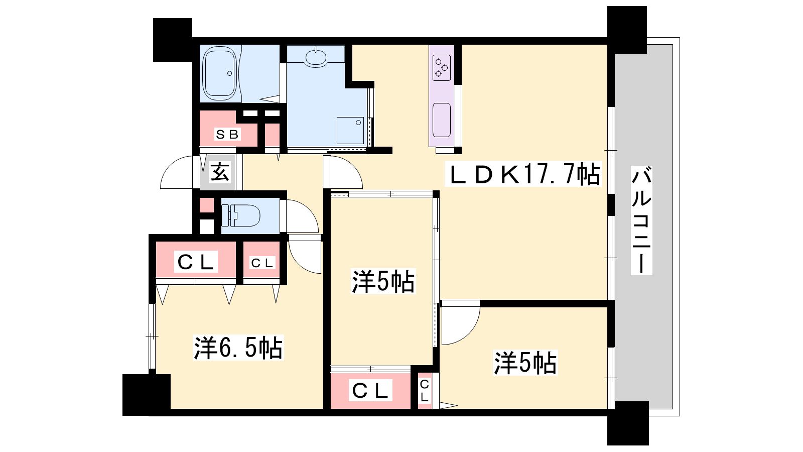 - LDK17.7帖、洋室6.5帖、洋室5帖、洋室5帖