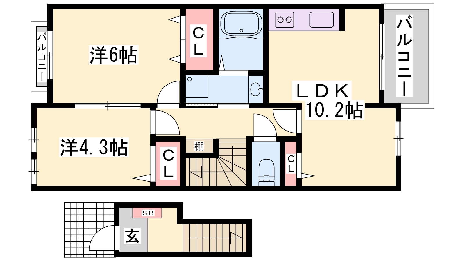 - LDK10.2帖、洋室6帖、洋室4.3帖
