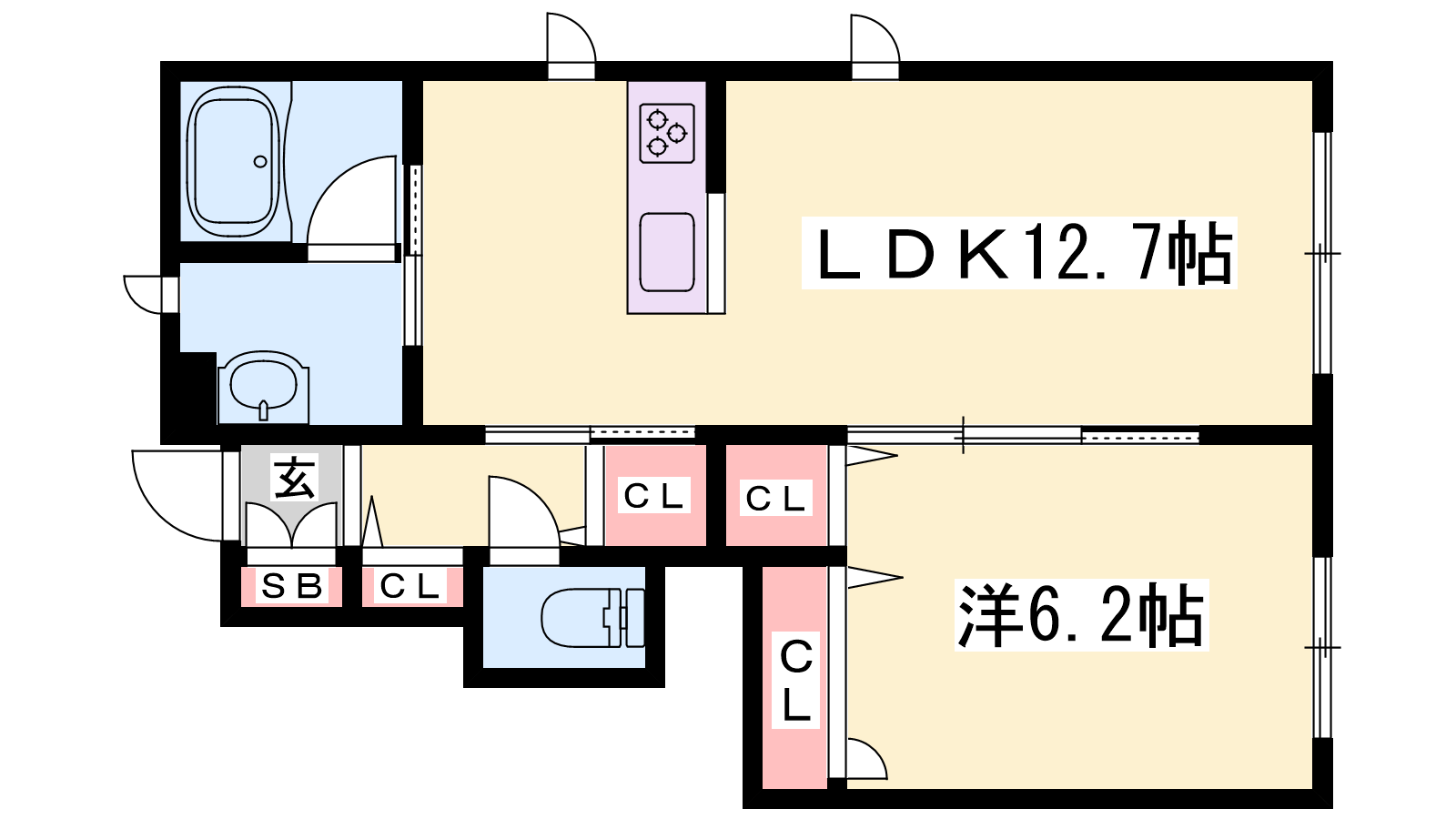 - LDK12.7帖、洋室6.2帖