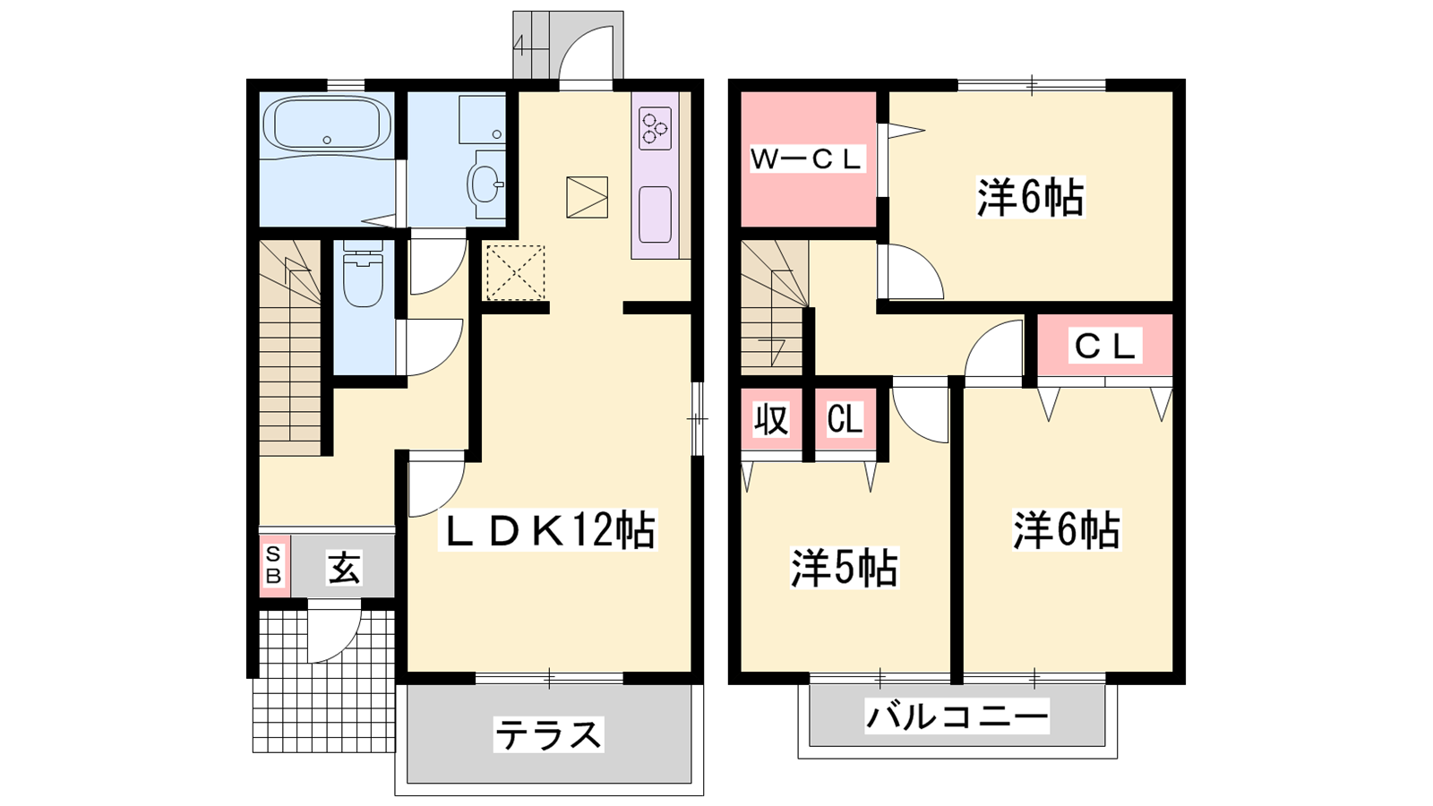 - LDK12帖、洋室6帖、洋室6帖、洋室5帖