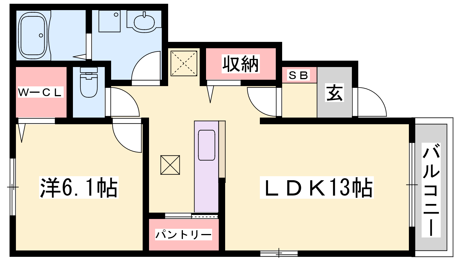 - LDK13帖、洋室6.1帖