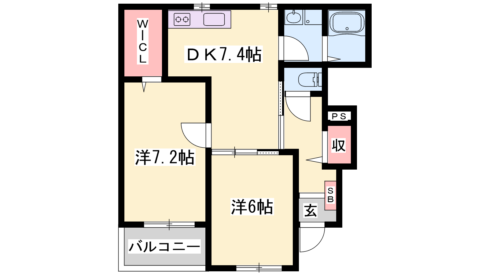 - DK7.4帖、洋室7.2帖、洋室6帖