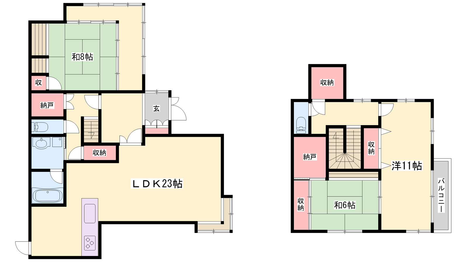 - LDK23帖、洋室11帖、和室6帖、和室8帖