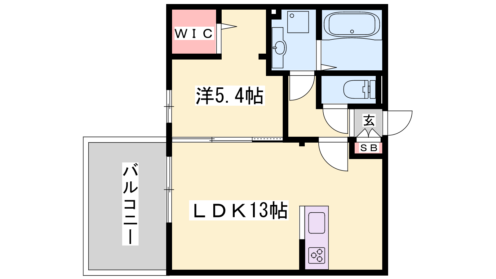 - LDK13帖、洋室5.4帖
