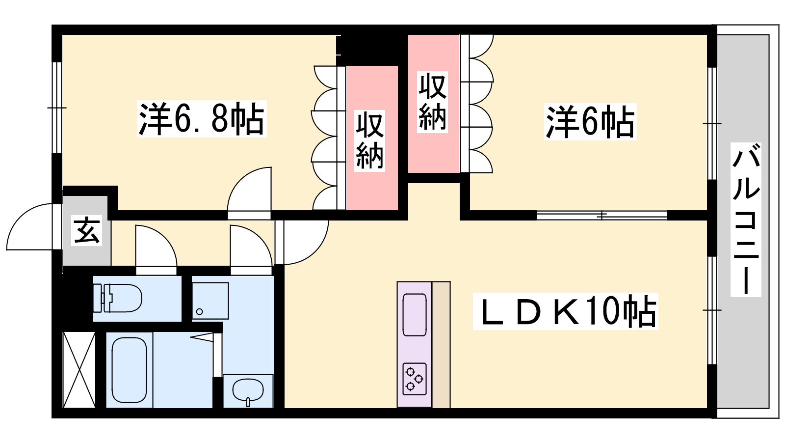- LDK10帖、洋室6.8帖、洋室6.1帖