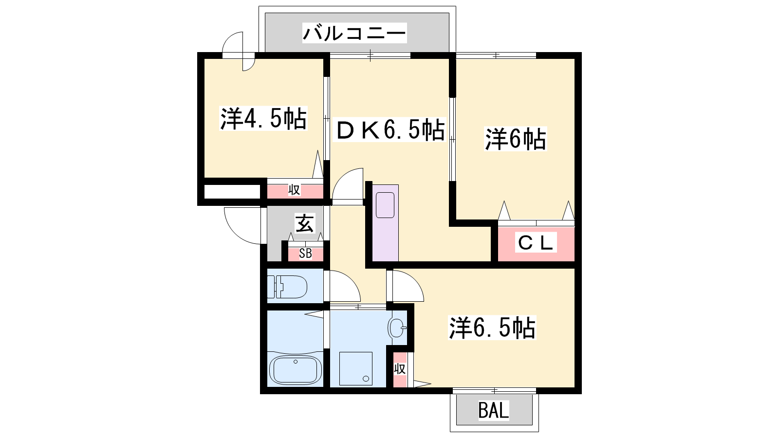 - DK6.5帖、洋室6.5帖、洋室6帖、洋室4.5帖