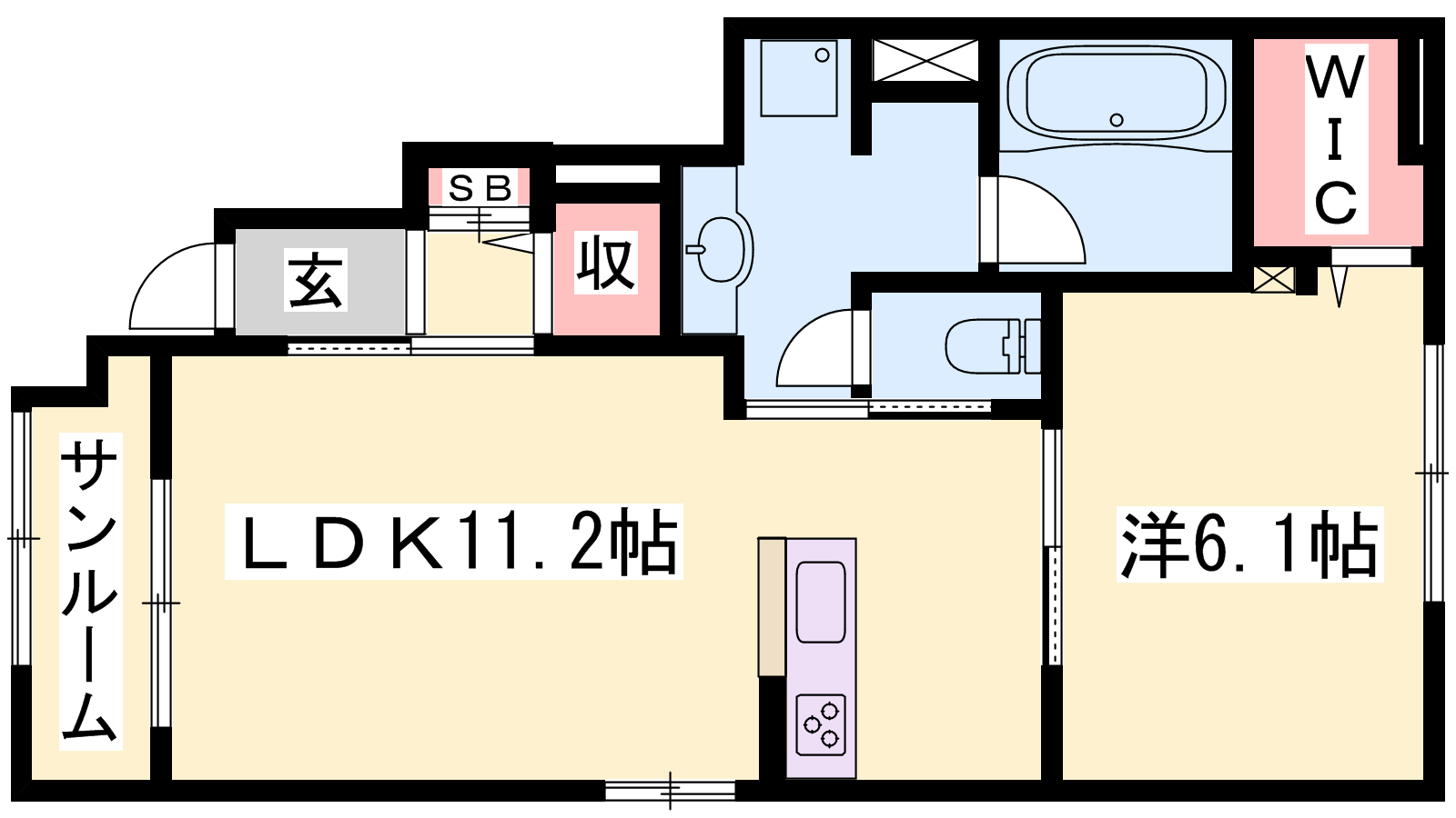 - LDK11.2帖、洋室6.1帖