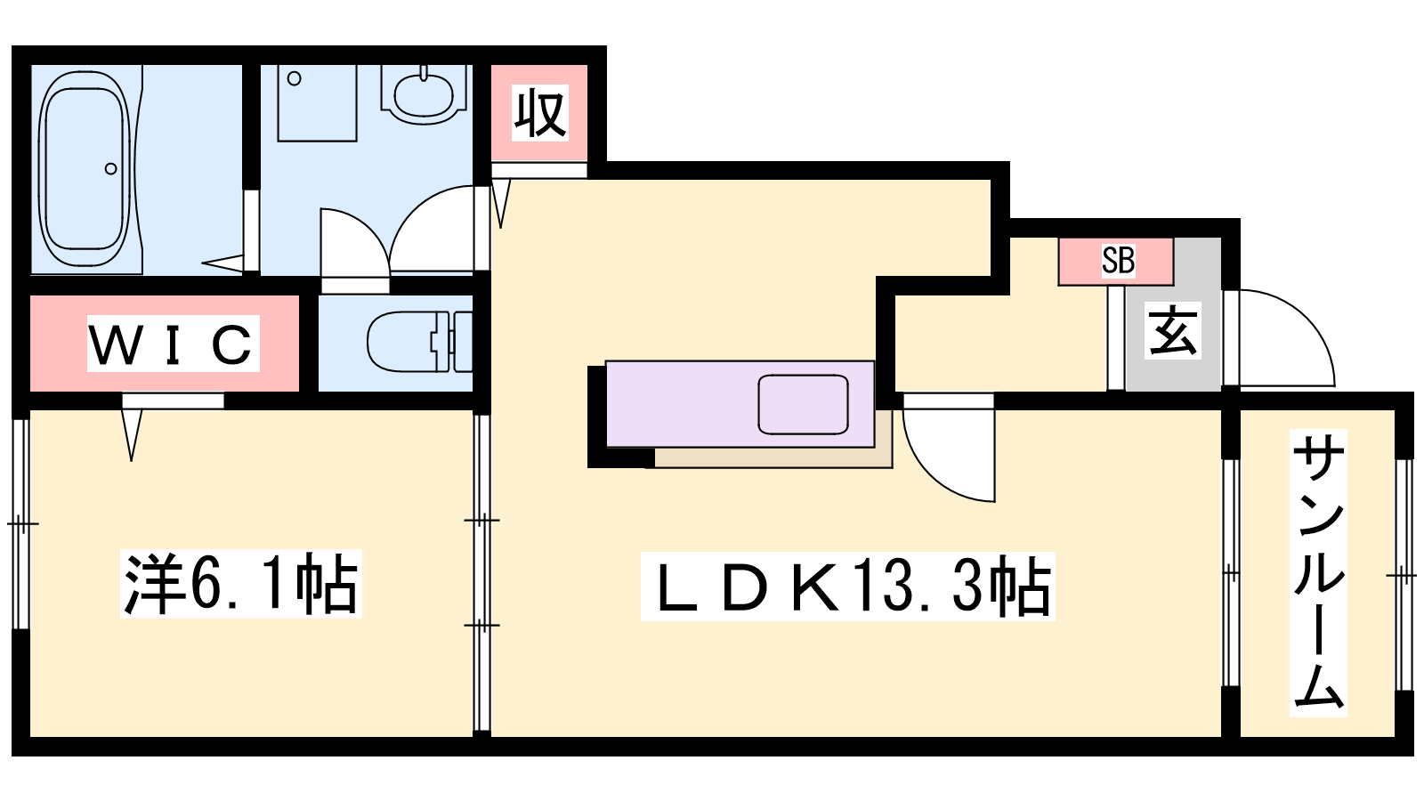 - LDK13.3帖、洋室6.1帖