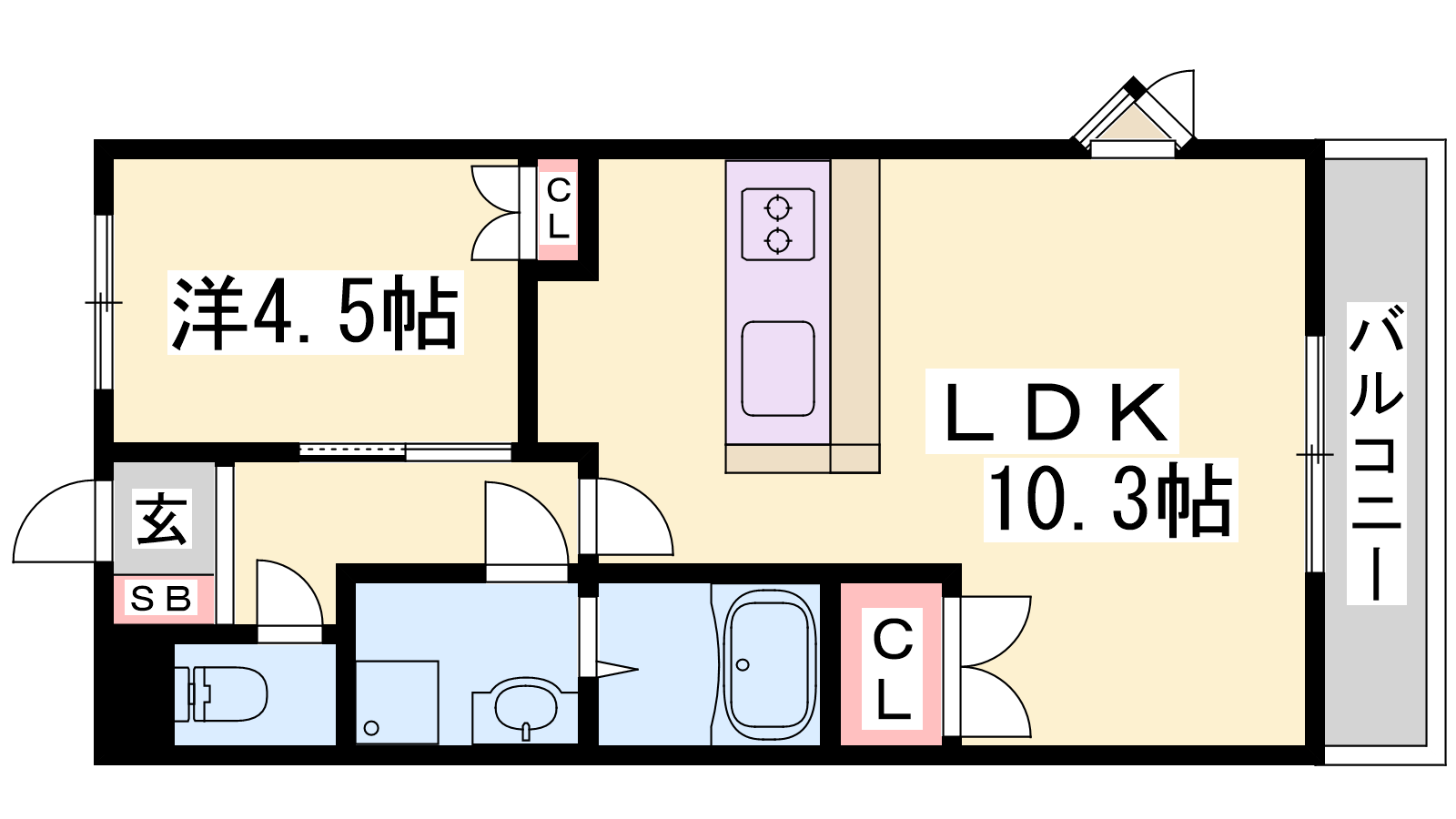 - LDK10.3帖、洋室4.5帖