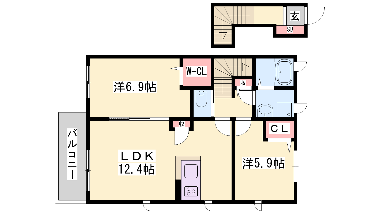 - LDK12.4帖、洋室6.9帖、洋室5.9帖