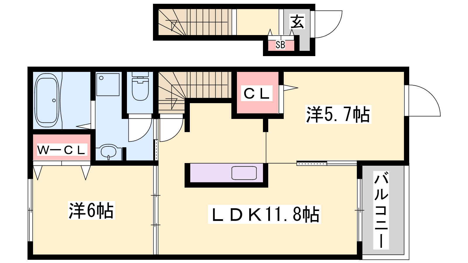 - LDK11.8帖、洋室6帖、洋室5.7帖